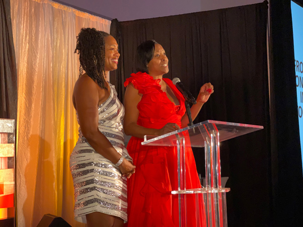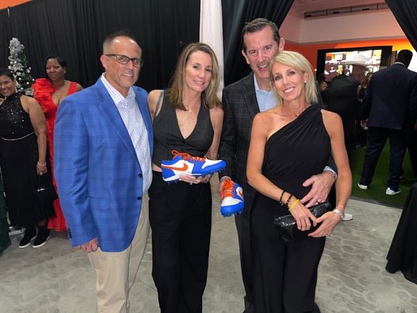 A Who’s Who of contributors from around the world filled the huge gymnasium transformed into an elegant event hall. The venue was mesmerizing and charming to say the least. Black draping and the green turf laid throughout created the ambiance for the evening. The sneakers on the grassy field were perfect and everyone was quite comfortable. Individual and group photos were taken as you entered the venue. Awards were presented throughout the night to the major sponsors while dinner was served, followed by a live auction where approximately $200,000 was raised.